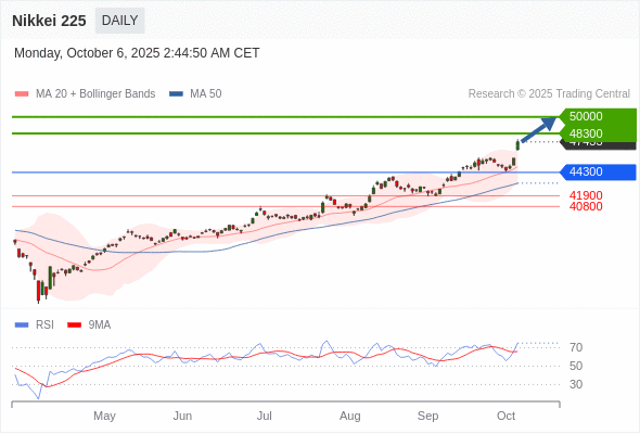 在 44300 之上,看涨,目标价位为 48300 ,然后为 50000 。
