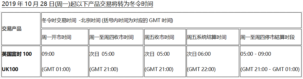 欧洲时区2019年10月28日(周)及北美时区2019年11月4(周)开始分别转为冬令时交易时间, 各欧美市场产品交易时间将随调整为冬令时交易时间,敬请留意!