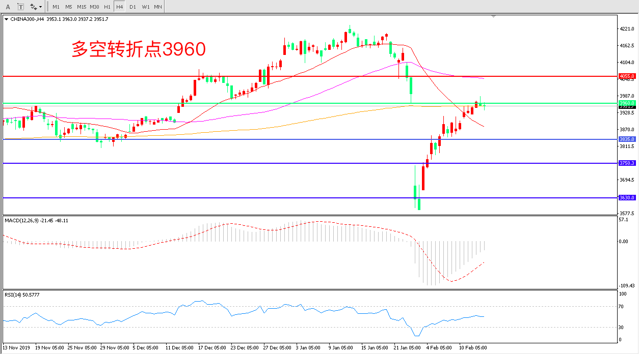4小时图看,沪深300冲高回落涨势有暂缓迹象3960依然是短期多空分水岭,均线系统走平,MACD绿柱缩短,RSI指标走平,近期延续上行概率较大。