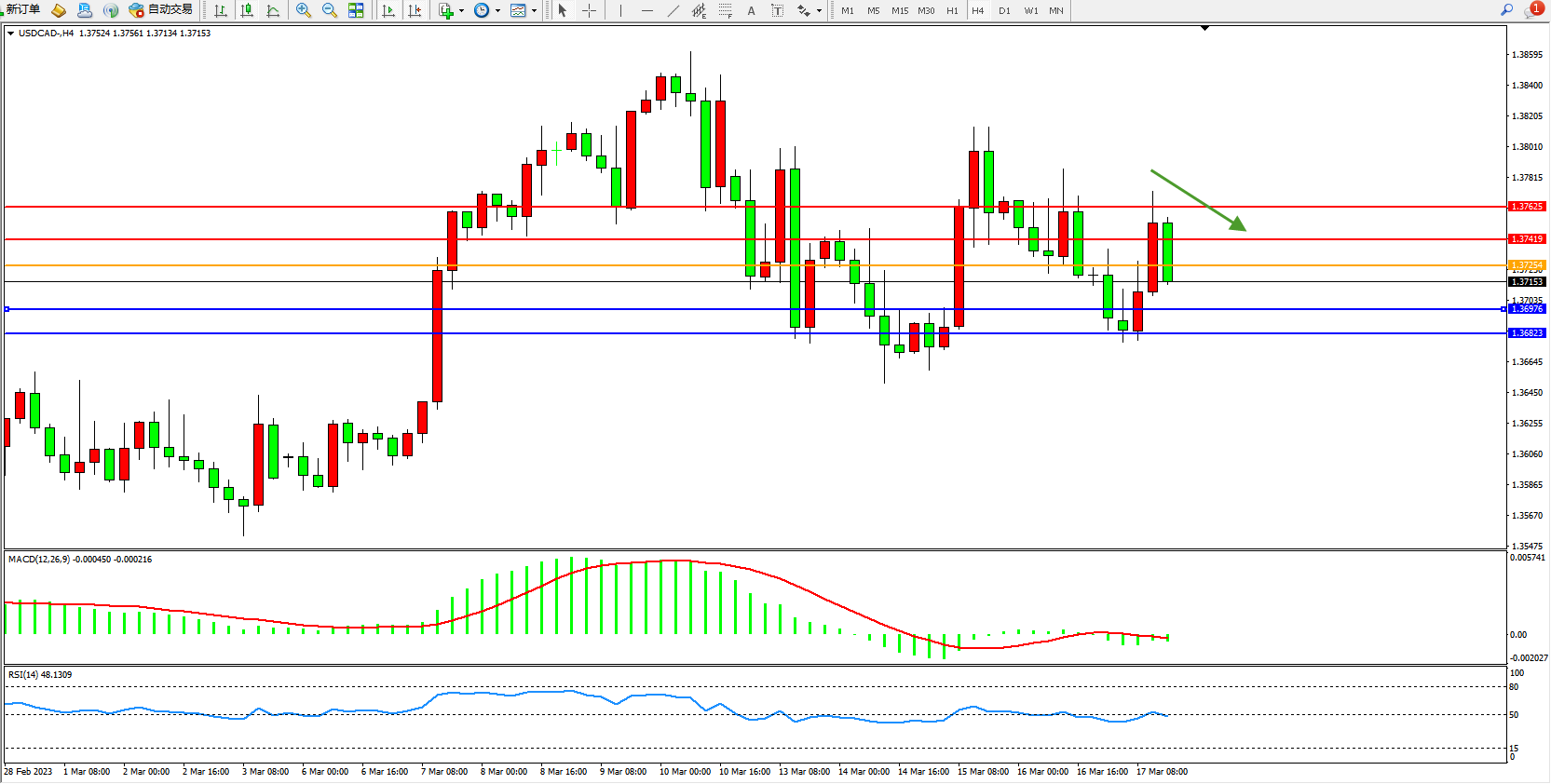 美元加元USDCAD——4小时K线图显示: